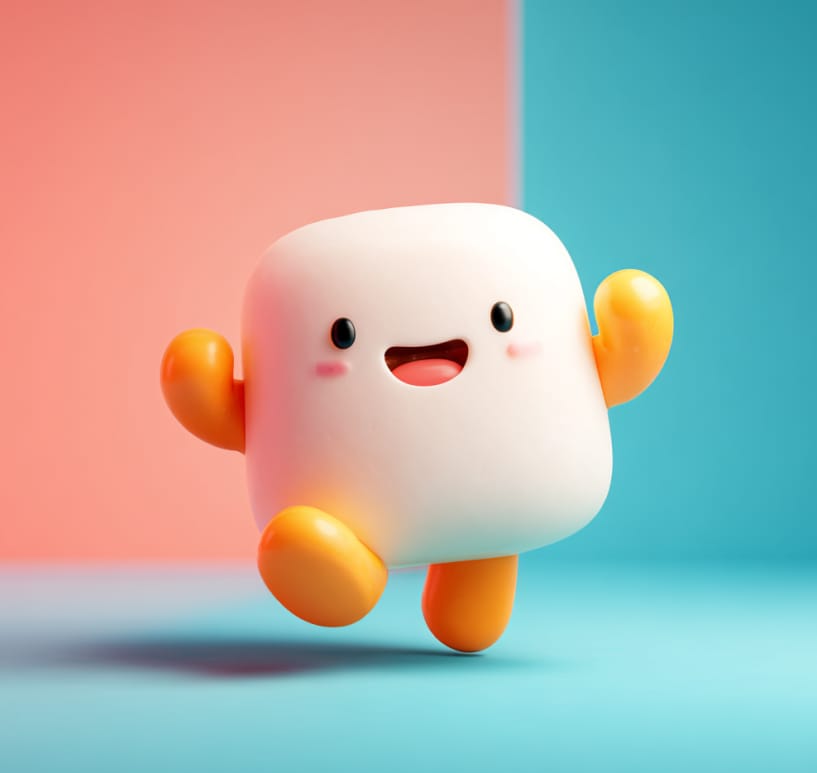 /imagine prompt: A playful 3D character mascot for a tech startup, in the clean and vibrant "Pop Matte 3D" illustration style. 3D render, C4D style. The character has a super smooth, matte, soft-touch plastic texture. The lighting is soft and diffuse, like in a professional photo studio. The colors are applied with soft, clean gradients, featuring a cheerful pastel pink and orange palette. Posed against a simple, two-tone background