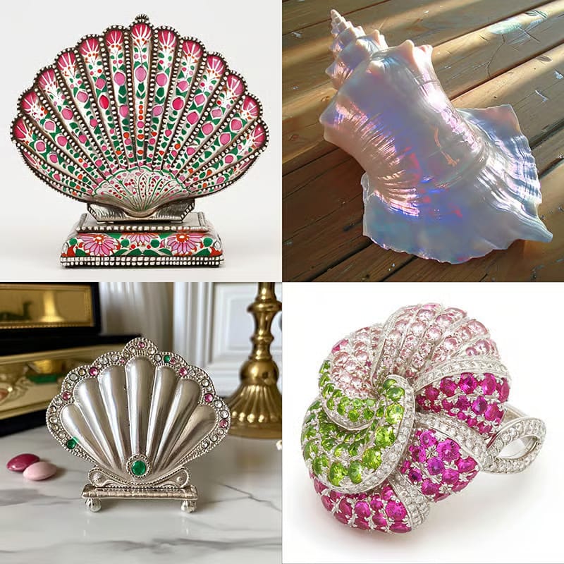 The result includes multiple styles: intricate jewelry, polished ornaments, and even naturalistic shells, as seen above.